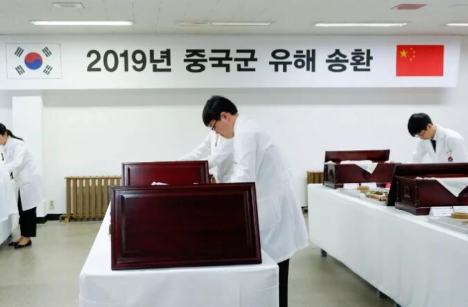 中韓雙方遵循人道主義原則,本著友好協(xié)商、務(wù)實合作的精神,2014年至2018年已成功交接589位在韓中國人民志愿軍烈士遺骸,今年是按照中韓雙方達成的共識實施的第六次交接。