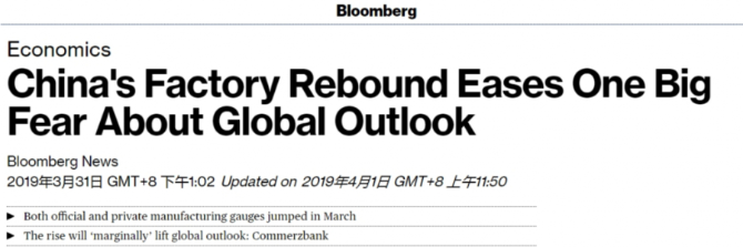 另據(jù)美國彭博社網(wǎng)站報道,中國3月份發(fā)布的首個官方經(jīng)濟指標顯示,全球第二大經(jīng)濟體經(jīng)濟企穩(wěn),這緩解了對全球經(jīng)濟前景的擔憂。