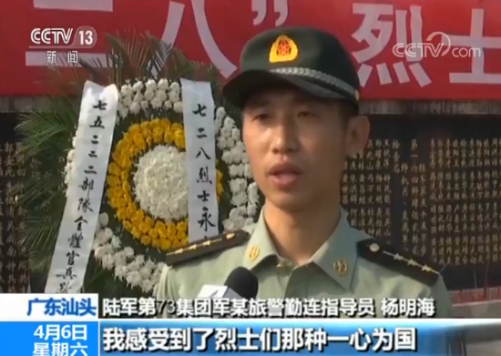 第73集團軍某旅警勤連指導(dǎo)員 楊明海:通過緬懷先烈,我感受到了烈士們那種一心為國、無怨無悔的高尚境界。每一位為了民族復(fù)興、國家富強、人民幸福捐軀的英雄,都應(yīng)值得我們永遠銘記。