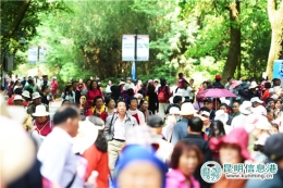 市民成群結(jié)隊(duì)、扶老攜幼“耍西山”。記者黃曉松/攝