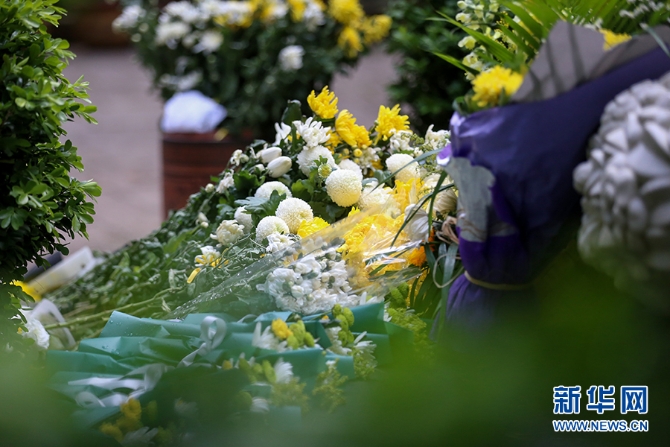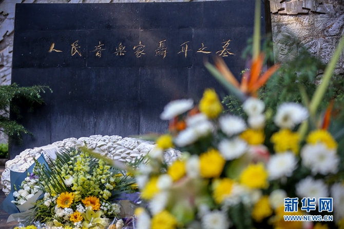 聶耳墓前擺放了黃色和白色的鮮花。新華網(wǎng) 張楠/攝
