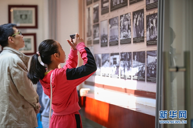 在聶耳紀(jì)念館,一個(gè)小女孩用相機(jī)記錄下聶耳的生前故事。新華網(wǎng) 張楠/攝