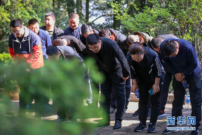 ?來自內(nèi)蒙古自治區(qū)中國二冶集團(tuán)有限公司的職工們安靜地在聶耳墓前分發(fā)自帶的鮮花。他們手持鮮花,整齊排列在墓前,靜默地依次上前獻(xiàn)花?!奥櫠菄璧淖髑?每次聽到國歌的聲音,都能很深地激發(fā)我們的愛國情懷。今天是中國傳統(tǒng)的清明節(jié),我們趁著在昆明建設(shè)工程的機(jī)會(huì)來祭奠革命的前輩。” 中國二冶集團(tuán)有限公司的王先生這么說。