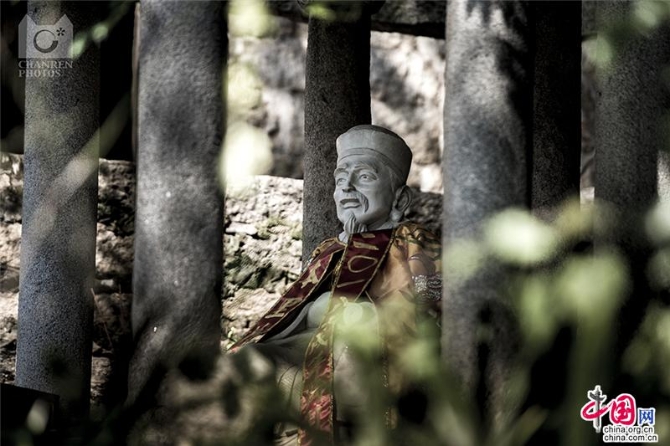 草庵內(nèi)供奉著摩尼光佛像,這也是世上僅存的一尊摩尼教佛像,在一次關(guān)于摩尼教的國際學(xué)術(shù)會議上,這尊摩尼佛像被選為大會的會徽。佛像身上的顏色都是天然的,它是利用了石頭上的天然色彩,進行的俏色巧雕。