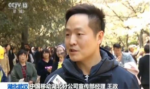中國移動湖北分公司宣傳部經理王政:我們利用CPE,也就是一個無線路由器的形式,將5G信號從基站接收下來,然后以無線WIFi的形式,來供給校園內所有的游人,以及我們做直播的媒體,它的下載速率可以達到1.1個G(每秒)。