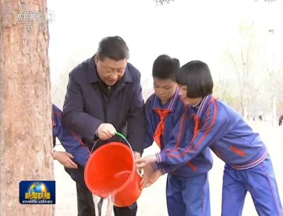 植樹活動結(jié)束時(shí),習(xí)近平還寄語參加植樹的少先隊(duì)員。(央視網(wǎng))