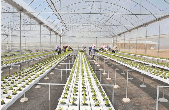 圖為4月8日,彌勒市朋普鎮(zhèn)慶來村的農(nóng)民在無土蔬菜種植基地勞作。