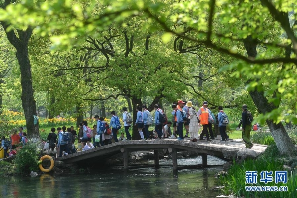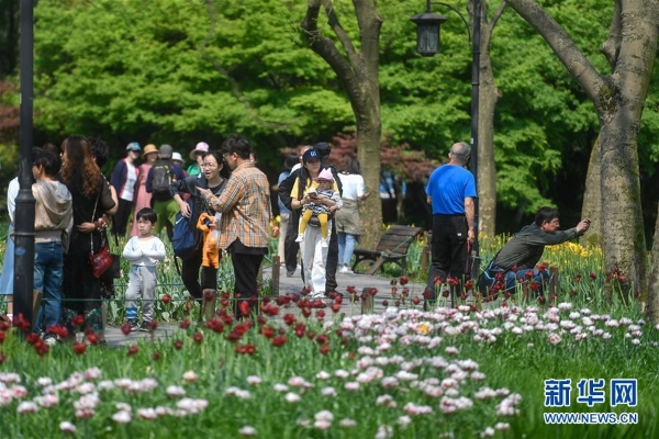 4月9日,市民和游客在太子灣公園賞花踏春。近日,浙江省杭州市太子灣公園里鮮花競(jìng)相綻放,吸引眾多市民和游客前來(lái)游園踏春。新華社記者 黃宗治 攝