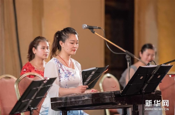 4月8日,在埃及首都開羅,中國江蘇女子民族樂團(tuán)的演員在舞臺(tái)上表演。新華社記者鄔惠我攝