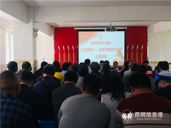 昆明信息港訊 記者段佳琪 4月10日,雨花社區(qū)大黨委“掃黑除惡——基層黨組織在行動(dòng)”主題活動(dòng)在呈貢區(qū)雨花社區(qū)開展,發(fā)動(dòng)廣大群眾參與掃黑除惡專項(xiàng)斗爭。