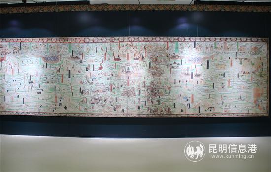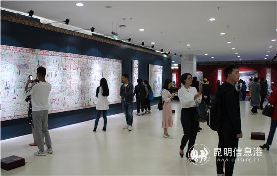 數(shù)字化高保真壁畫精品,選取敦煌石窟近50幅精美的壁畫,分別以尊像、建筑、圖案、飛天、民俗生活等敦煌石窟中極具代表性的專題,現(xiàn)場觀眾通過掃描壁畫圖版旁的二維碼,即可進(jìn)入“數(shù)字敦煌”,了解壁畫所在洞窟的所有信息。同時,敦煌專門派出培訓(xùn)師對云南大學(xué)選拔的學(xué)生志愿者進(jìn)行解說培訓(xùn),讓觀眾全面了解壁畫所在洞窟中的空間信息,以及所承載的藝術(shù)、歷史和文化。