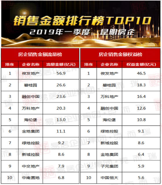 4月10日,2019一季度昆明房企銷售排行榜出爐,上榜TOP企業(yè)特征鮮明,本土房企淡出排行榜,僅俊發(fā)持續(xù)穩(wěn)居第一,但是與排名靠后的房企差距呈現(xiàn)縮小趨勢(shì),市場(chǎng)占有率走低。