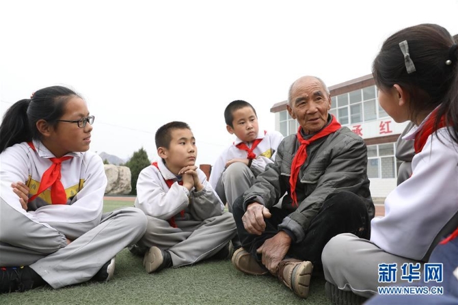 在西柏坡希望小學(xué),老黨員閆青海給孩子們講奮斗創(chuàng)業(yè)的故事(4月8日攝)。 新華社發(fā)梁子棟/攝