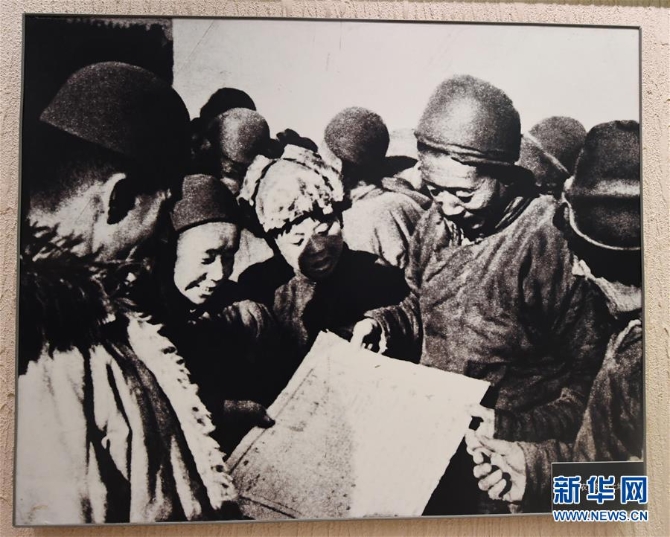 西柏坡紀(jì)念館里,幾張黑白圖片記錄著歷史。