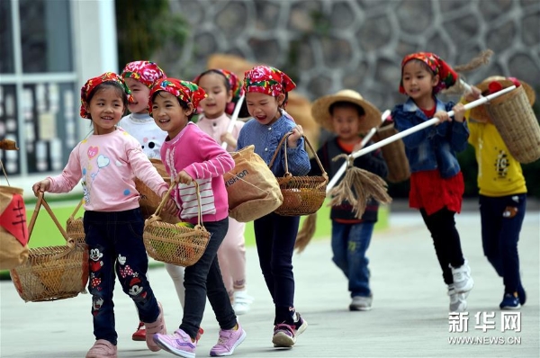 4月10日,連城縣實(shí)驗(yàn)幼兒園兒童展示“新泉犁春?!?。 新華社記者 彭張青 攝