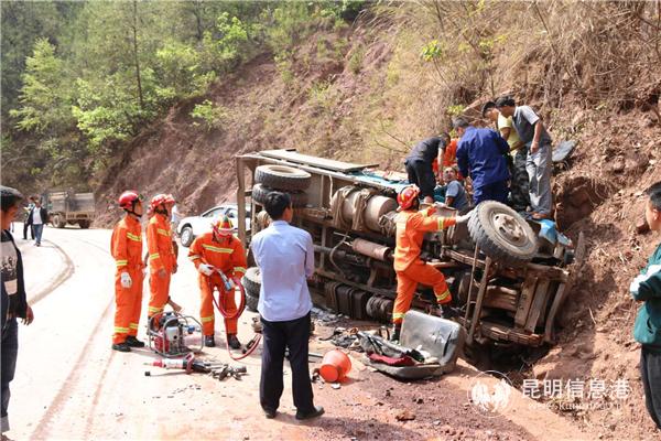 4月5日14時(shí)05分,位于景東縣往大街鎮(zhèn)方向(距大街鎮(zhèn)約6公里處)發(fā)生一起交通事故,1人被困。消防救援人員到達(dá)現(xiàn)場(chǎng)后,發(fā)現(xiàn)因救援空間狹窄,只能一名消防員進(jìn)入側(cè)翻小貨車駕駛室進(jìn)行破拆救援。