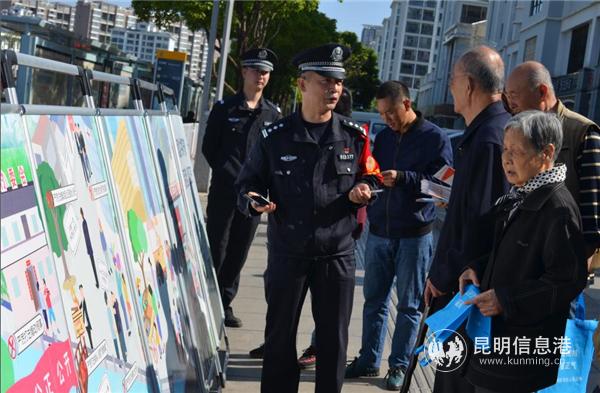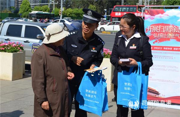 昆明信息港訊 記者合宇聰 4月11日上午,昆明市公安局盤龍分局龍頭街派出所黨支部聯(lián)合龍頭街信用社黨支部在霖雨橋地鐵站口聯(lián)合開展“掃黑除惡·防范電信詐騙”主題黨日活動,進一步提升轄區(qū)人民群眾掃黑除惡、防范電信詐騙犯罪的法律意識,營造全民知曉、全民參與掃黑除惡專項斗爭、防范電信詐騙犯罪的濃厚氛圍,號召社會各界和廣大人民群眾積極檢舉揭發(fā)涉黑涉惡違法犯罪線索,堅決防范電信詐騙犯罪活動。