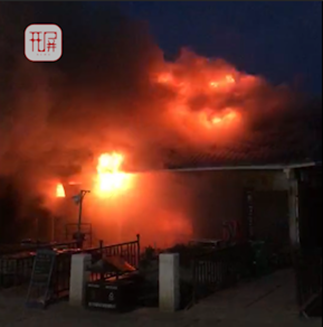 彭先生介紹,火燒起來后沒隔幾分鐘當?shù)氐囊惠v消防車就趕到了現(xiàn)場,后來陸續(xù)來了不少撲火人員,到9點多火才得到控制,明火滅去,現(xiàn)場還有些火星?!拔覀兙妥≡诟浇目蜅?沒有聽說客棧受到影響,著火后,整個村子停電停水,10點左右客棧的供水用電才恢復(fù)了正常,當時火燒開后,看著恐怖就走了,有無傷亡并不清楚?!?/p>