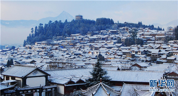 雪后的麗江古城如詩如畫。新華網(wǎng)發(fā)(趙慶祖攝)
