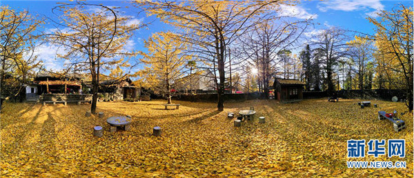 云南騰沖銀杏樹下遍地金。新華網(wǎng)邵維岑 攝