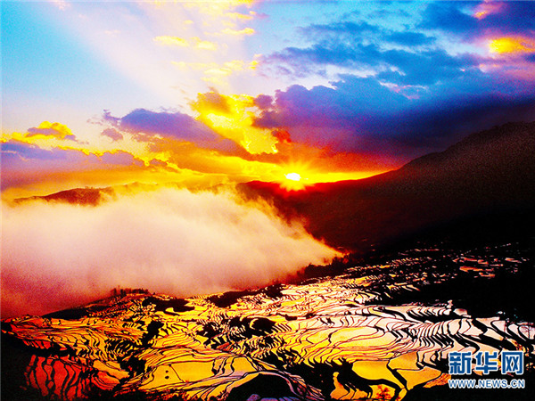 哈尼梯田。新華網(wǎng)發(fā)