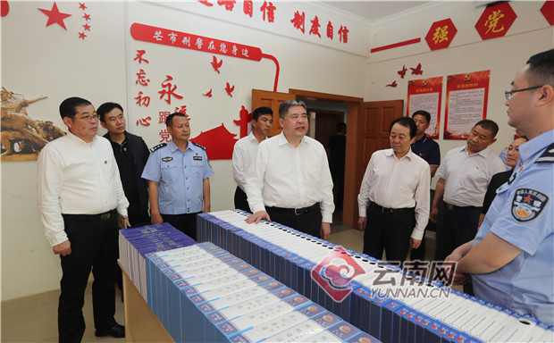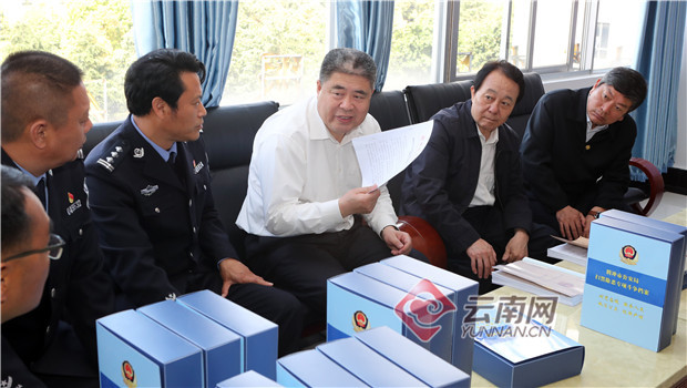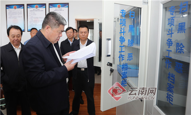 4月7日,中央掃黑除惡第20督導組組長韓勇帶隊在德宏州下沉開展專項督導工作時,在芒市公安局察看了解掃黑除惡工作情況。記者 楊崢/攝
