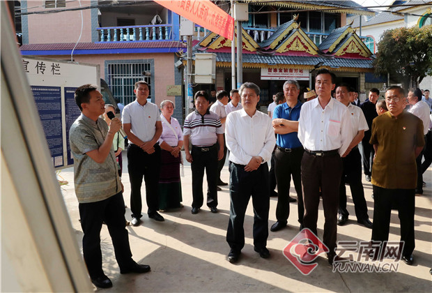 4月8日,中央掃黑除惡第20督導組組長韓勇帶隊在德宏州下沉開展專項督導工作時,在芒市鎮(zhèn)芒晃村民小組走訪察看法治示范村建設(shè)情況。記者 楊崢/攝