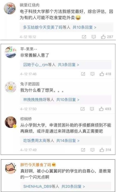 很多人不愿意在同學(xué)面前展示自己的貧窮,所以干脆不去申請(qǐng)貧困生補(bǔ)助;與此同時(shí),開證明這種確認(rèn)貧困與否的辦法,不僅很麻煩,而且誰也無法知道證明材料的真?zhèn)?。此外,高校為了甄別貧困學(xué)生,搞過競(jìng)選貧困生、評(píng)議貧困生等很多招數(shù),但無不遭遇侵犯學(xué)生隱私、傷害學(xué)生自尊的質(zhì)疑。