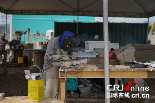 巴西工人在現(xiàn)場施工。