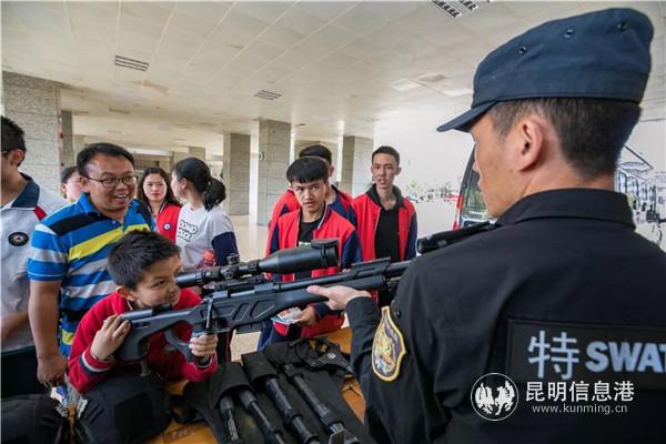 全國公安機(jī)關(guān)優(yōu)秀人民警察胡黎、昆明好人黃靖雯等4名特警支隊(duì)民警作為先進(jìn)個人代表現(xiàn)場講述警察故事,與同學(xué)們進(jìn)行互動交流。 特警支隊(duì)云豹突擊隊(duì)的隊(duì)員分別進(jìn)行了反恐處置科目、特警小組戰(zhàn)術(shù)演練,向廣大師生展示了昆明警方開展掃黑除惡專項(xiàng)斗爭和反恐防恐工作的能力和決心,精彩的實(shí)戰(zhàn)演練贏得了全校師生的喝彩。