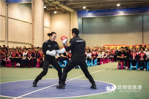 活動中,昆明市第一中學(xué)學(xué)生社團(tuán)——國防與軍事小組的20名同學(xué)為與會嘉賓和現(xiàn)場觀眾獻(xiàn)上集健身、表演、格斗于一體的《騰飛的綠影》軍體拳表演。市公安局文藝宣傳小分隊(duì)隊(duì)員激情洋溢演唱的歌曲《夜空中最亮的星》和《我愛你,中國》與師生們形成強(qiáng)烈共鳴,把活動推向高潮。