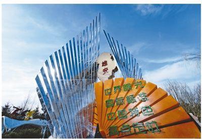 河北園中的雄安新區(qū)標(biāo)志。記者 賀勇攝