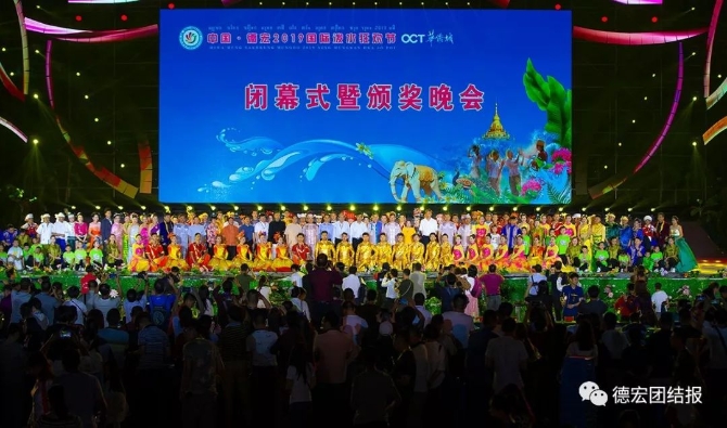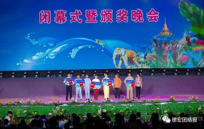 出席閉幕式的領(lǐng)導(dǎo)為在潑水節(jié)期間舉辦的“德宏美”傣族歌曲征集大賽、“金旺旺”傣族美食大賽、尋找“最美孔雀公主”大賽、第二屆“絲路光影”國(guó)際微視頻德宏影展等各項(xiàng)比賽獲獎(jiǎng)?wù)?,以及為本次潑水?jié)的成功舉辦作出積極貢獻(xiàn)的企業(yè)代表頒獎(jiǎng)。州政協(xié)主席、中國(guó)·德宏2019國(guó)際潑水狂歡節(jié)組委會(huì)主任黃麗云致閉幕詞。