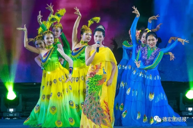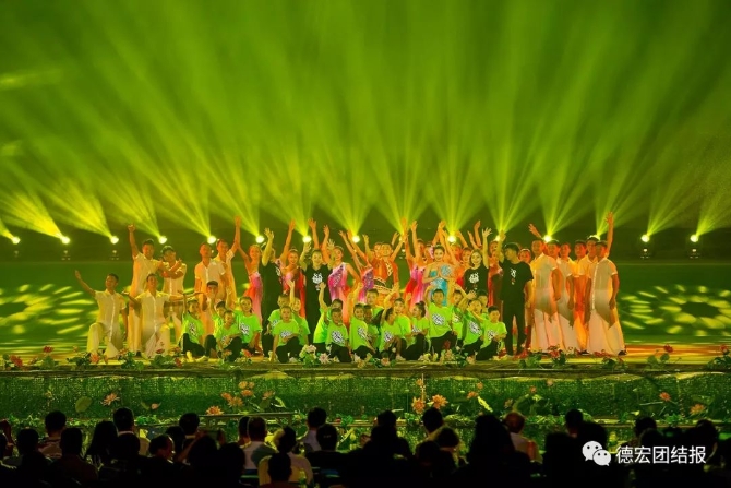 閉幕式晚會(huì)在歌舞表演《人們向往的地方》中拉開(kāi)序幕,華美的燈光、激昂的音樂(lè)、曼妙的舞姿瞬間把現(xiàn)場(chǎng)觀眾的注意力聚焦在舞臺(tái)上。整場(chǎng)演出內(nèi)容豐富,高潮迭起,《吉祥圣水·歡樂(lè)德宏》《吉祥圣水·幸福德宏》兩個(gè)篇章集合了歌舞表演、器樂(lè)演奏等精彩紛呈的節(jié)目,為廣大觀眾呈現(xiàn)了一臺(tái)美輪美奐的視聽(tīng)盛宴,淋漓盡致地展示了美麗德宏的無(wú)限魅力。晚會(huì)在歌伴舞《我愛(ài)你中國(guó)》中落下帷幕。