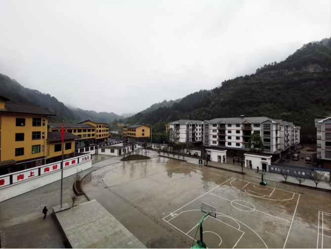 △群山環(huán)繞的中益鄉(xiāng)小學(xué),創(chuàng)建于1936年。(央視記者張宇拍攝)