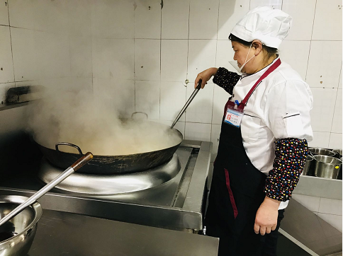 △炊事員焦大翠正在給師生們做晚餐。(央視記者拍攝)