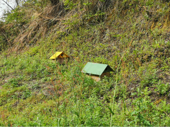 △華溪村山坡上的蜂箱。(央視記者張宇拍攝)