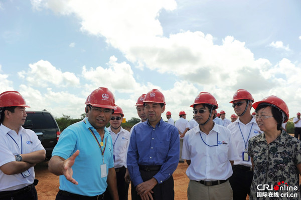 中國(guó)前駐委內(nèi)瑞拉大使趙榮憲在委鐵項(xiàng)目施工現(xiàn)場(chǎng)聽(tīng)取時(shí)任中國(guó)中鐵委內(nèi)瑞拉分公司常務(wù)副總經(jīng)理甘百先(現(xiàn)任中鐵國(guó)際集團(tuán)董事長(zhǎng)、黨委書(shū)記)的工作匯報(bào)
