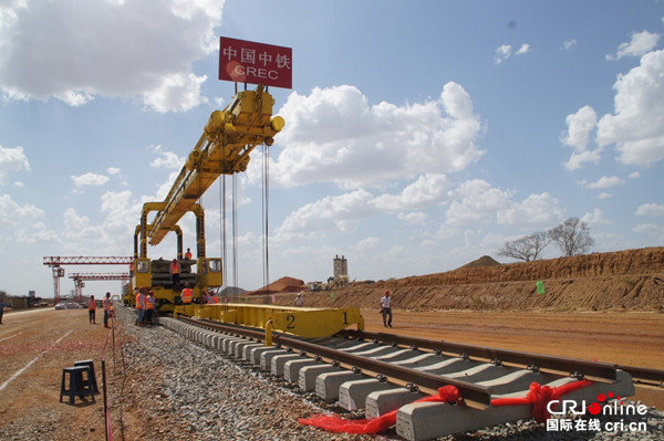 中國(guó)中鐵在迪阿鐵路鋪軌