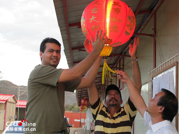 中委員工在營(yíng)地為迎接中國(guó)的春節(jié)張燈結(jié)彩