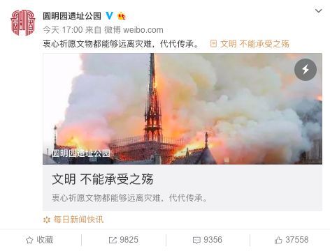 巴黎圣母院大火后,圓明園的官方微博發(fā)聲。文章沖上熱搜,引發(fā)網(wǎng)友熱議!