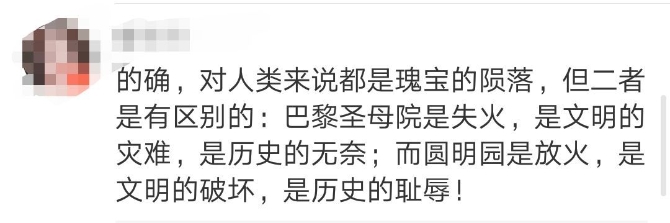這一刻的中國人,怎能不想起,背負(fù)了一百多年圓明園燒毀的心靈創(chuàng)傷,何其艱難、何其罔然,可惜圣母院,可惜圓明園,文化不應(yīng)該這樣毀滅,更不應(yīng)該人為踐踏。
