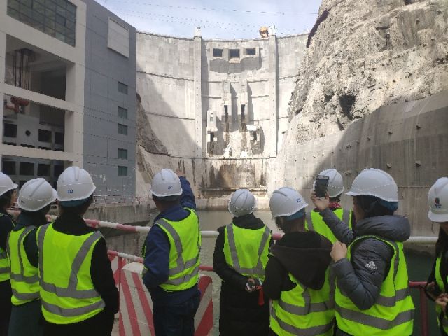 科幻作家在拉西瓦水電站的大壩前參觀。新華社 記者王秀瓊/攝