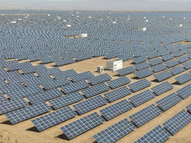 在國(guó)家電投黃河公司的共和光伏產(chǎn)業(yè)園區(qū)——全球裝機(jī)容量最大的光伏園區(qū),科幻作家晝溫站在觀光塔上,俯瞰如海洋般一望無(wú)際的太陽(yáng)能電池板陣列,感覺(jué)它們“像深藍(lán)色的多邊形向日葵,沉默地汲取恒星能量”。