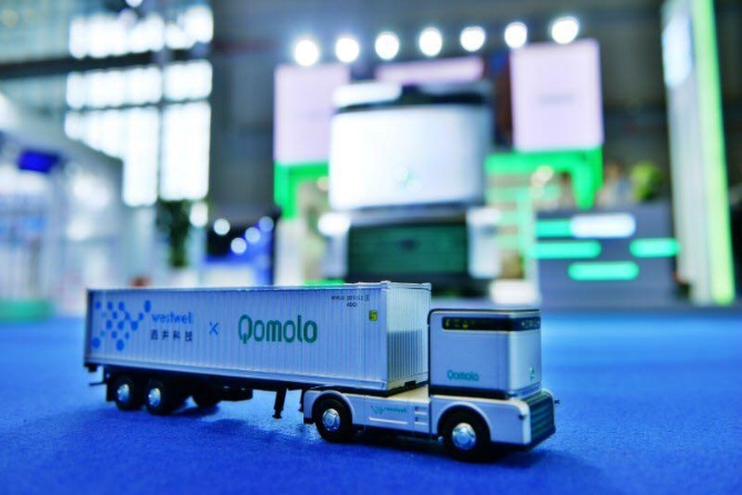 作為一輛純電動(dòng)重卡,Q-Truck在滿載80噸的情況下可以達(dá)到150公里時(shí)速。副電池可通過(guò)簡(jiǎn)易換電流程,實(shí)現(xiàn)3分鐘換電,達(dá)到30公里以上續(xù)航里程。利用視覺(jué)人工智能技術(shù),它能夠在碼頭進(jìn)行無(wú)人駕駛,無(wú)需磁釘?shù)容o助設(shè)備,有望成為智慧港口的一類重要裝備。