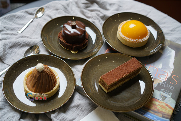 櫥窗里的甜品都想挨個(gè)試一遍,蒙布朗栗子蛋糕、巧克力榛子蛋糕、圓頂芒果百香慕斯、提拉米蘇,大概是美好的東西都特別讓人有食欲吧。