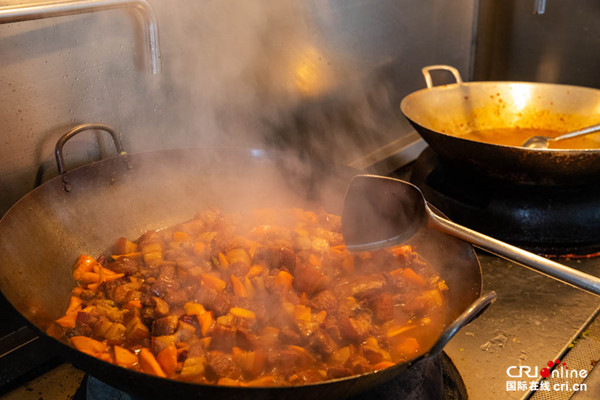 雅萬高鐵上的“幸福之家”-敬長勇師傅烹飪的紅燒肉最受員工喜愛 (攝影:李樹坤)