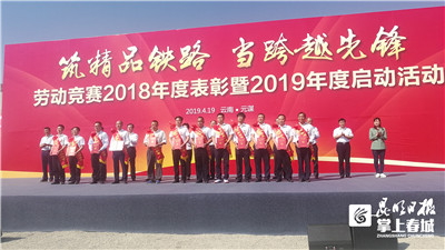 當天,由云南省總工會、中國鐵路昆明局集團共同組織開展的“筑精品鐵路 當跨越先鋒”勞動競賽2018年度表彰暨2019年度啟動活動在永廣鐵路元謀西站舉行,云南省政府、云南省總工會、楚雄州相關(guān)部門負責人現(xiàn)場進行了頒獎。中鐵電氣化局集團有限公司等5家建設(shè)單位榮獲“云南省五一勞動獎狀”,15人榮獲“云南省五一勞動獎?wù)隆保?0個單位榮獲“云南省工人先鋒號”,100人榮獲“云南鐵路建設(shè)先進個人”。