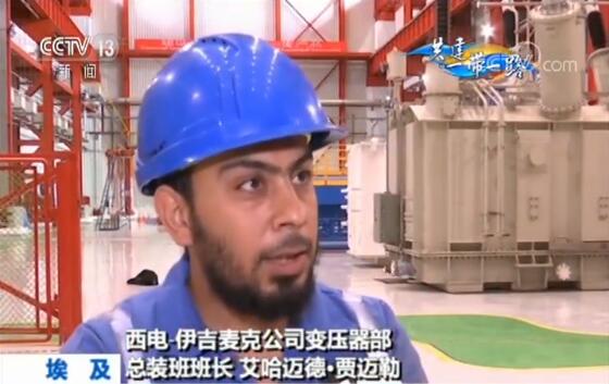 畫面上的這位主人公名叫艾哈邁德·賈邁勒,是中埃合資公司西電-伊吉麥克的一名工人,這會(huì)兒正帶著他的小組進(jìn)行變壓器的總裝工作。