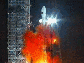長征三號乙運載火箭點火時刻(史嘯 攝)